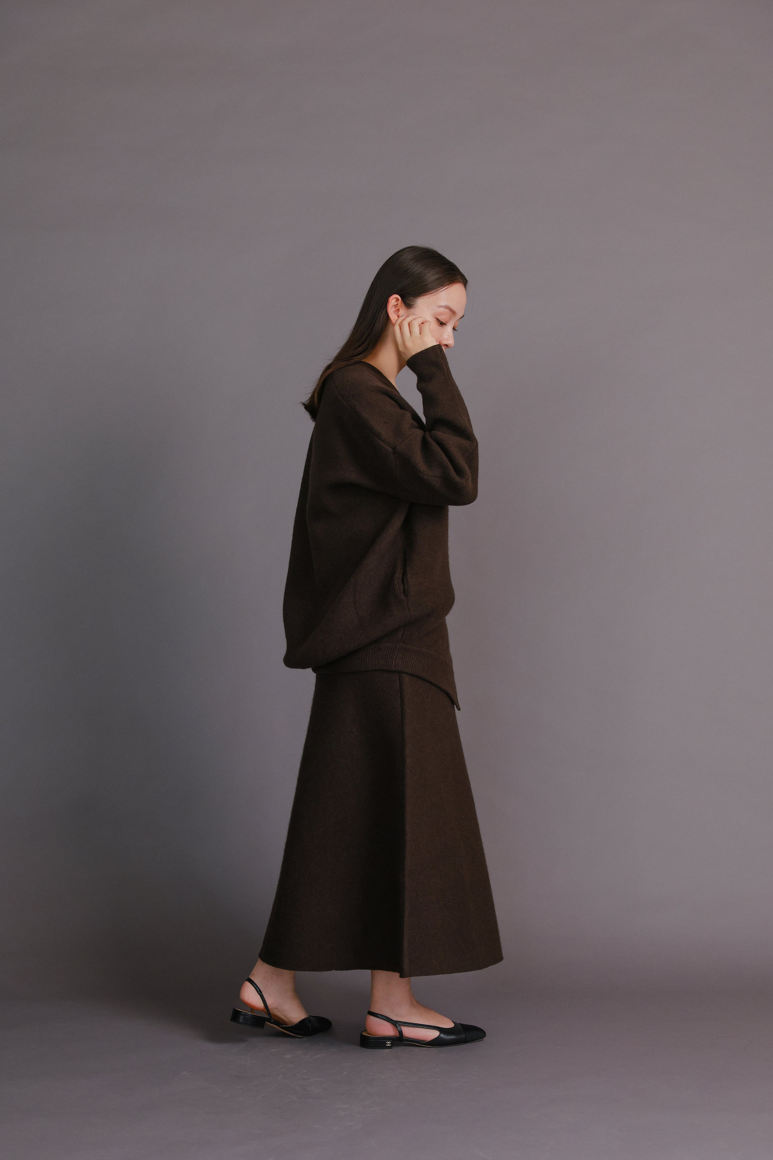 しっとりとした柔らかさと優しい温もりが魅力の、ヤク混素材のAラインニットスカート。