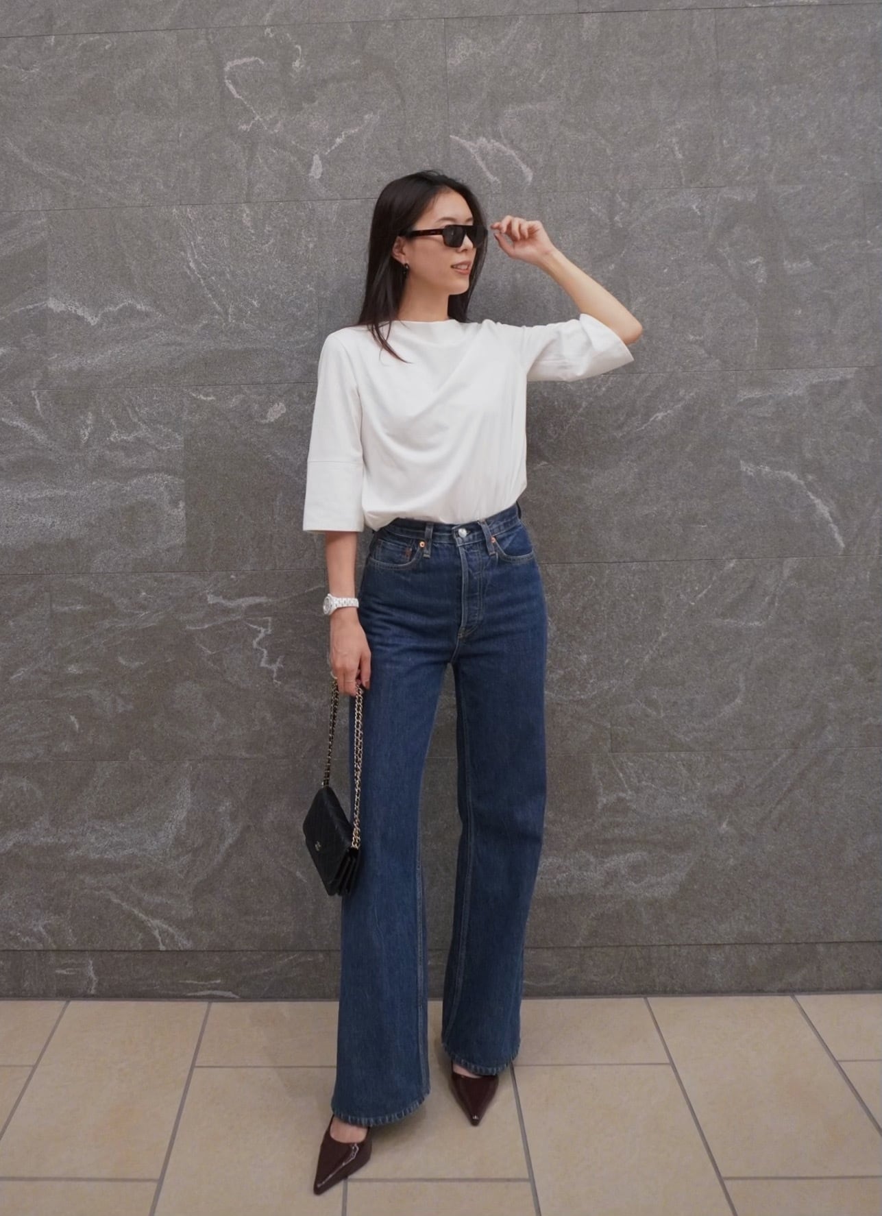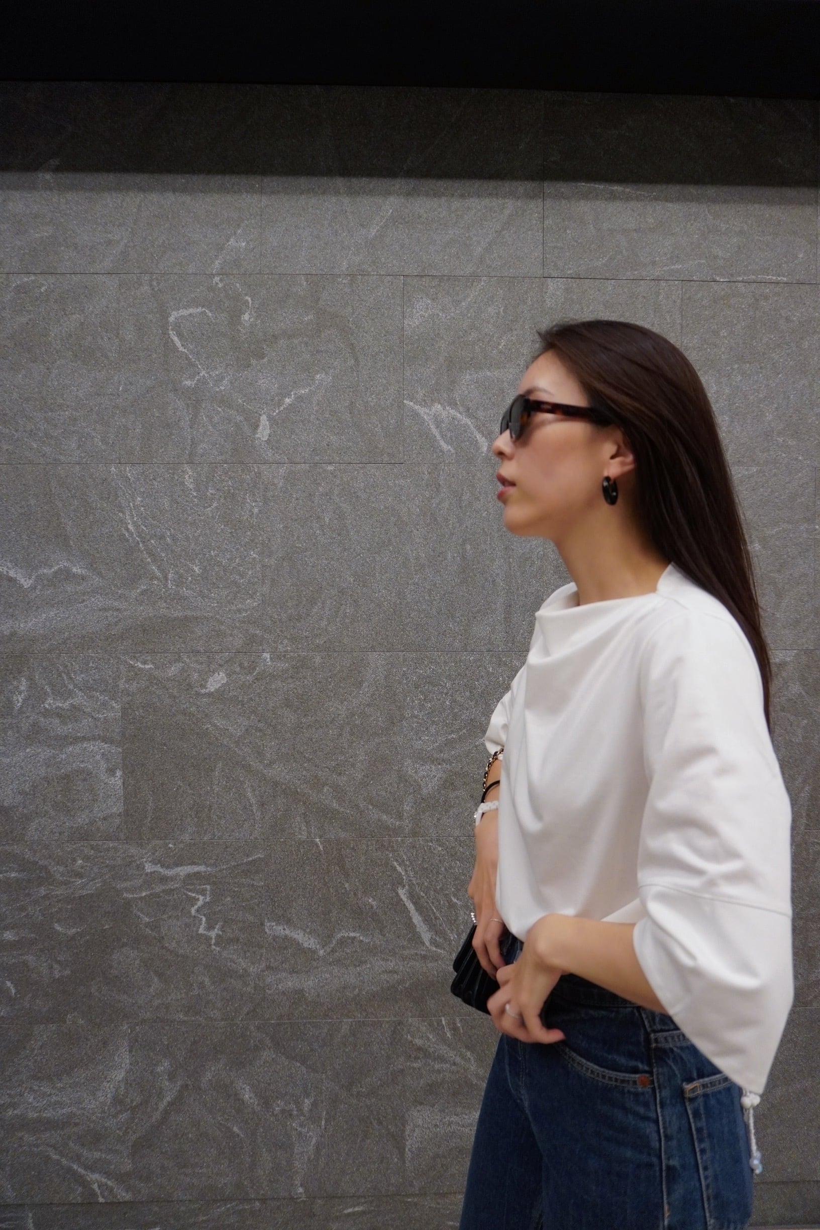 袖は5分丈で、気になる二の腕をカバーしつつすっきりと見えるデザイン。さらに、切り替え部分を一折りすると“半袖風”にもなるので、気分やスタイリングに合わせて変化を楽しんでいただけます。