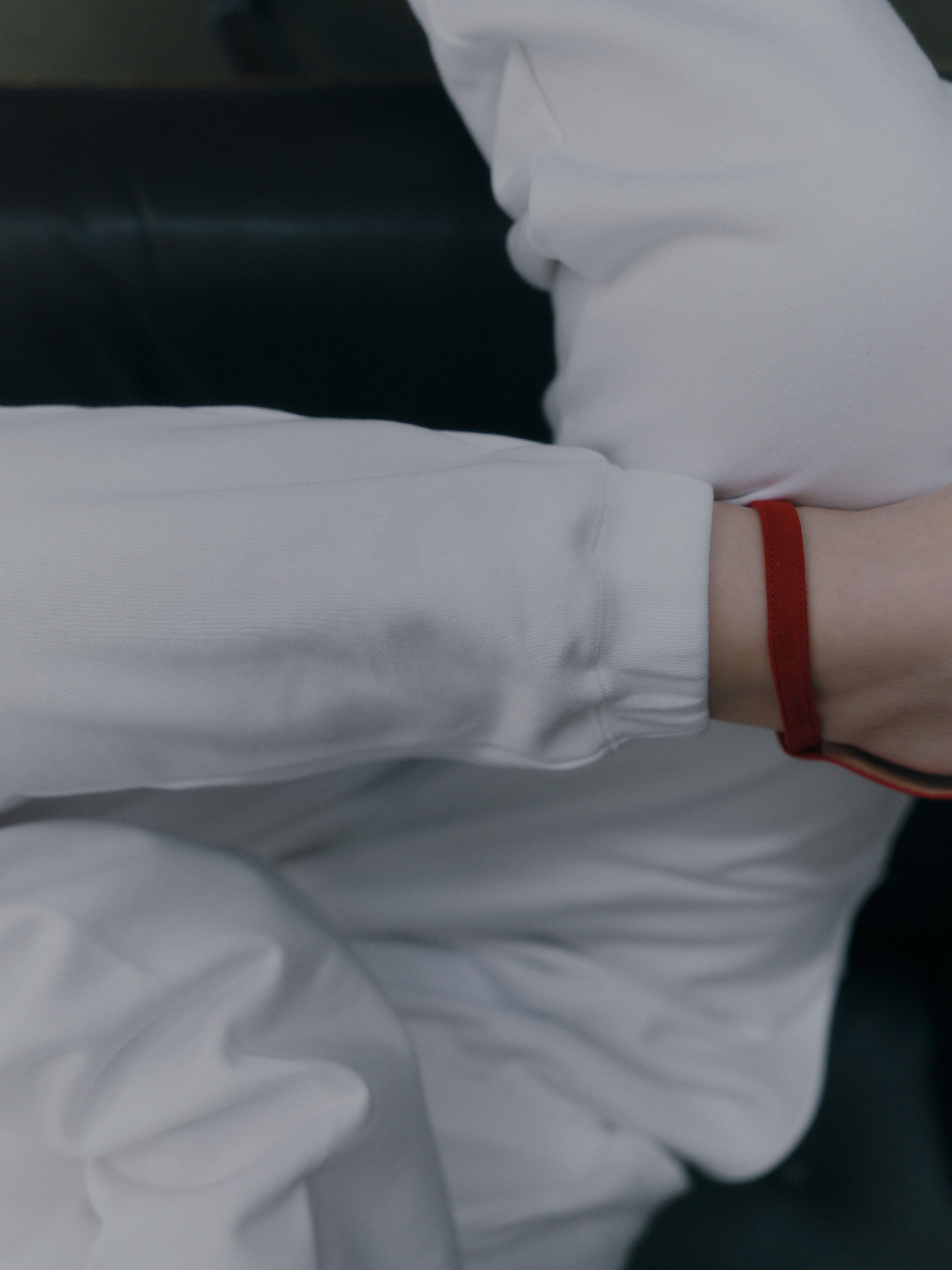 シルエットは、いわゆる“ぶかっとした”スウェットパンツではなく、